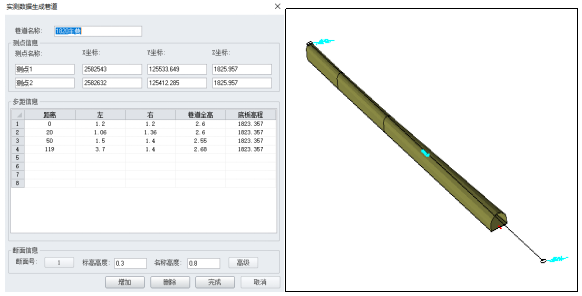 針對(duì)現(xiàn)場(chǎng)情況,制定測(cè)量巷道驗(yàn)收數(shù)據(jù)建模,以達(dá)到測(cè)量數(shù)據(jù)直接建模,不需傳統(tǒng)CAD制圖,可直接提交地質(zhì)、采礦專(zhuān)業(yè)應(yīng)用。
