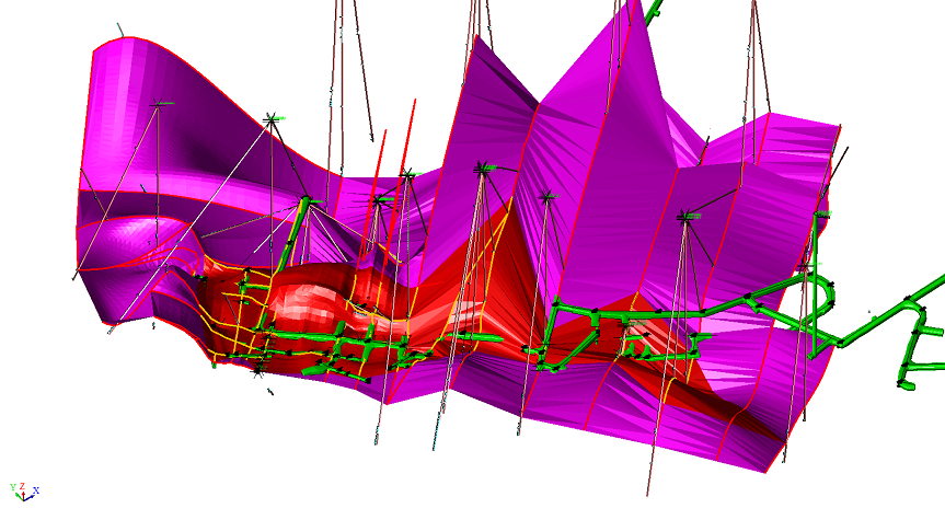 通過(guò)此次項(xiàng)目實(shí)施,提高了大屯錫礦地測(cè)人員的軟件使用水平,目前已能完全使用DIMINE軟件進(jìn)行建模,測(cè)量技術(shù)員驗(yàn)收和上圖已全部采用DIMINE,地質(zhì)、采礦技術(shù)人員已使用DIMINE進(jìn)行工程施工單出圖。通過(guò)定義軟件的標(biāo)準(zhǔn)規(guī)范,更加貼合礦山實(shí)際。
